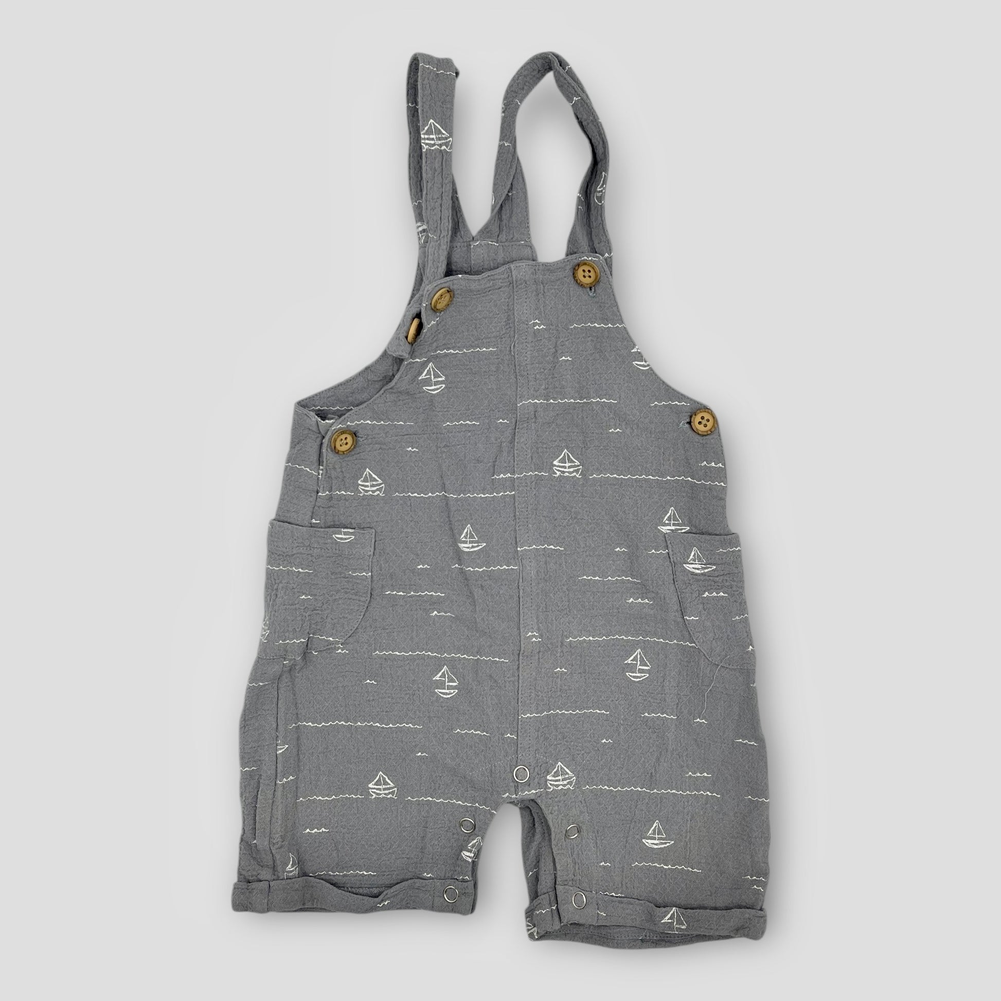 Salopette gaz de coton bleu petit bateau
