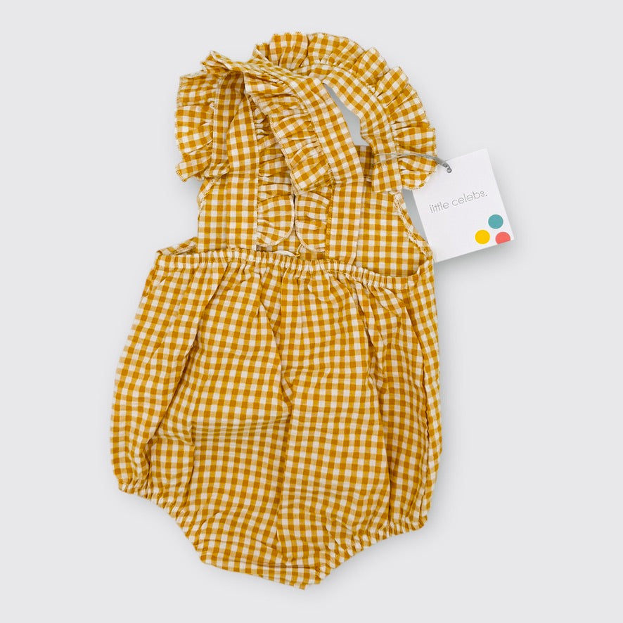 Combinaison barboteuse vichy jaune Jaune Fille
